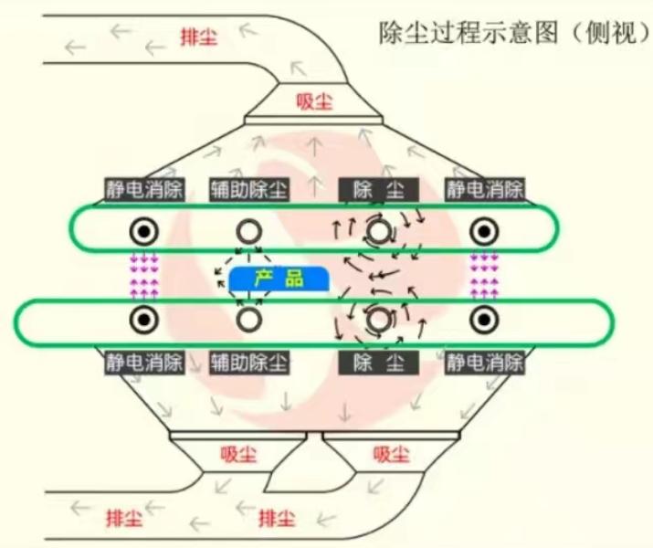 1) 主要功能:中和產(chǎn)品表面靜電值,清潔產(chǎn)品表面的同時(shí)將粉塵顆粒進(jìn)行有效抽離。