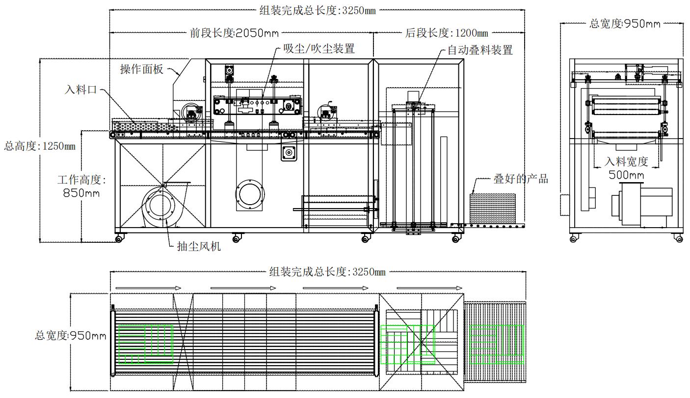 1) 進(jìn)料口輸送帶:采用防靜電寬皮帶傳送(或者采用特氟龍網(wǎng)帶傳動(dòng))